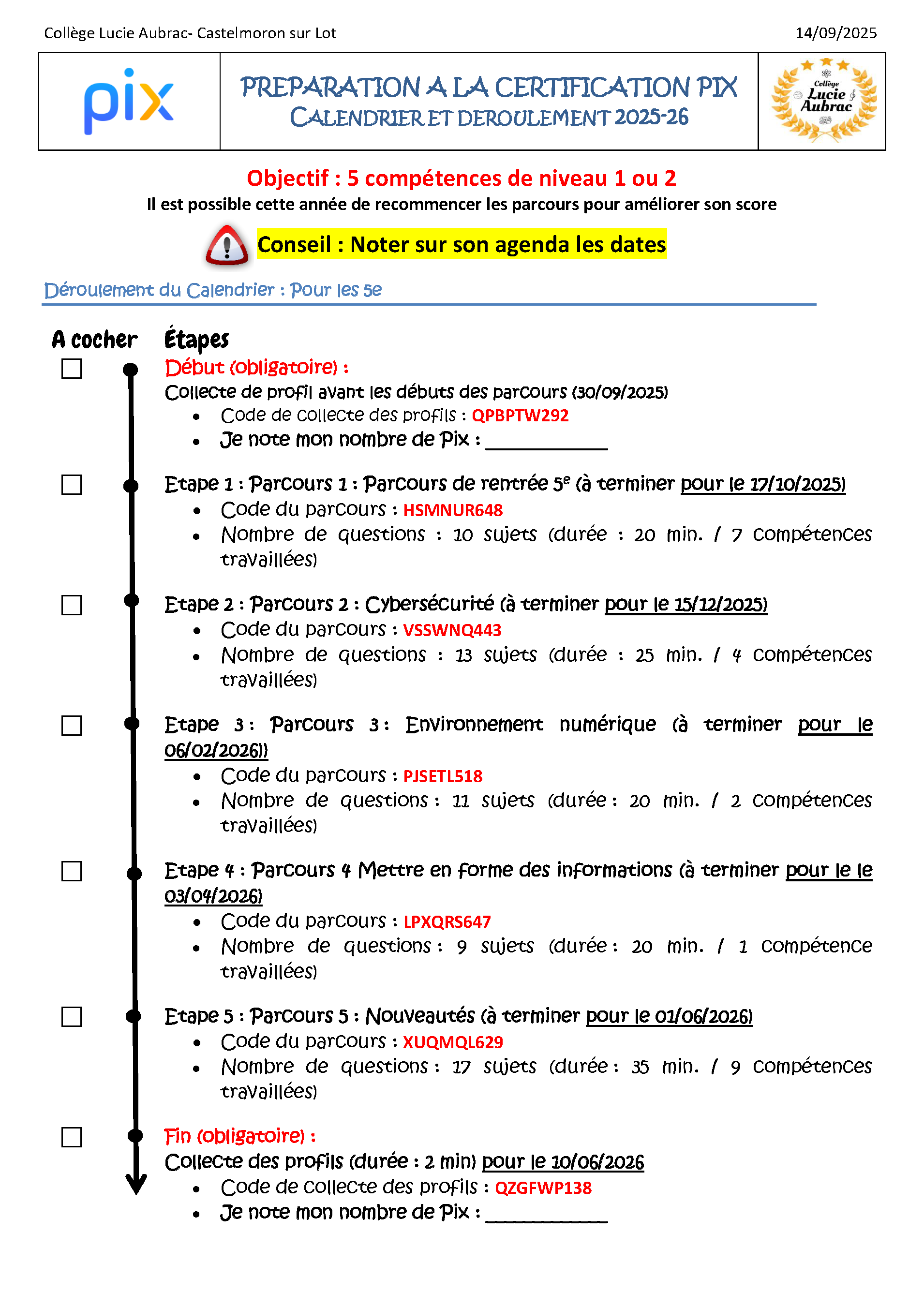 En plus du travail en autonomie, les parcours sont à réaliser au cours de l'année pour travailler régulièrement les différentes compétences et progresser dans le niveau de acquis.